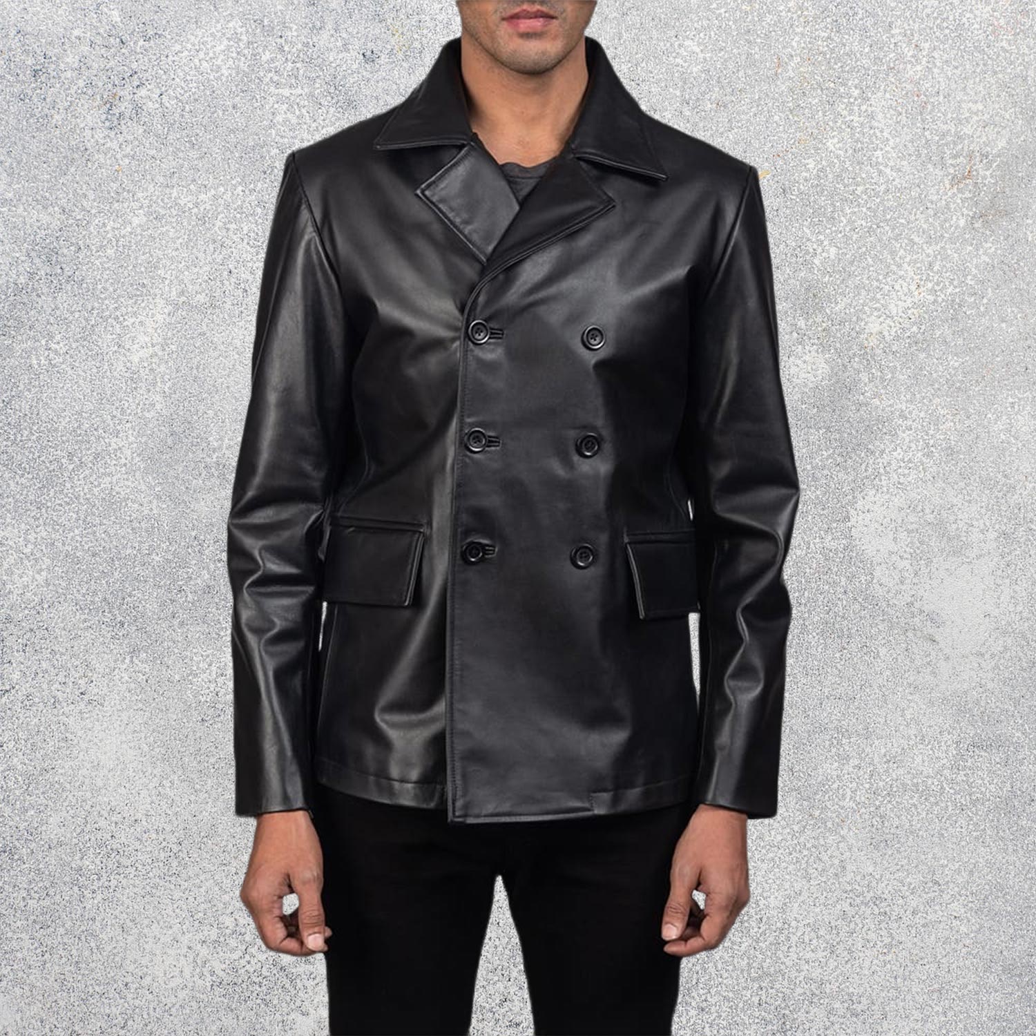 Equipped with two outside waist pockets and two inside pockets, it offers ample space for carrying daily essentials. The sleek black color and tailored fit make the Bailey Black Leather Naval Peacoat an essential wardrobe staple for individuals who appreciate refined outerwear.