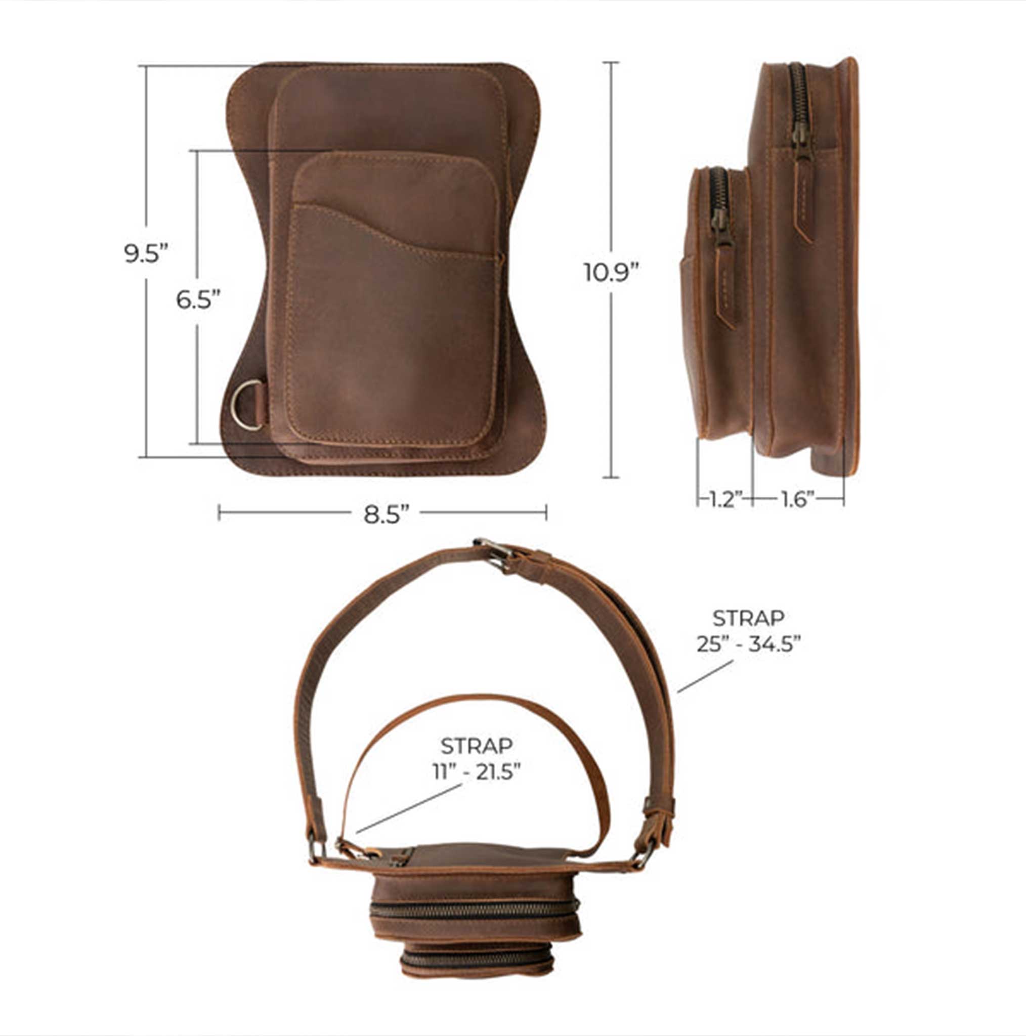 With multiple zippered compartments, this leather leg bag holds your phone, wallet, keys, documents, and daily essentials while keeping them protected and organized. Its compact profile allows free movement, making it equally suitable for commuting, travel, and everyday wear.