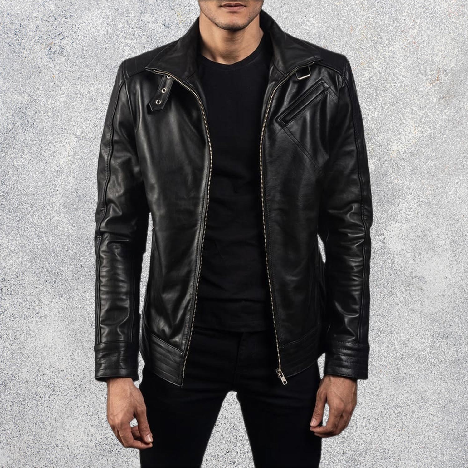 The Legacy Black Leather Biker Jacket offers a stylish and functional design, perfect for bikers or anyone seeking a rugged yet refined jacket for everyday wear.