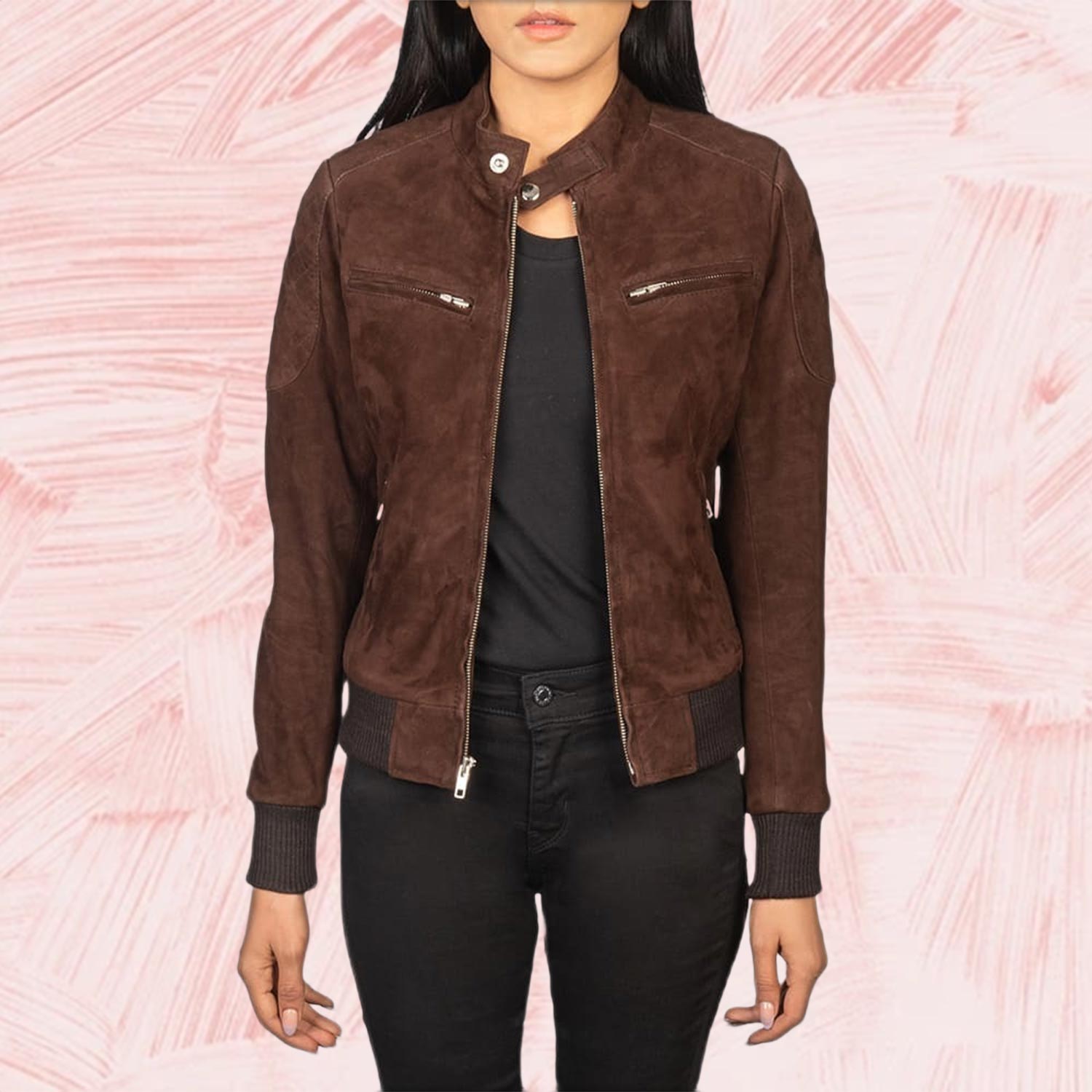 1 review for Rhea Mocha Suede Bomber Jacket for Women