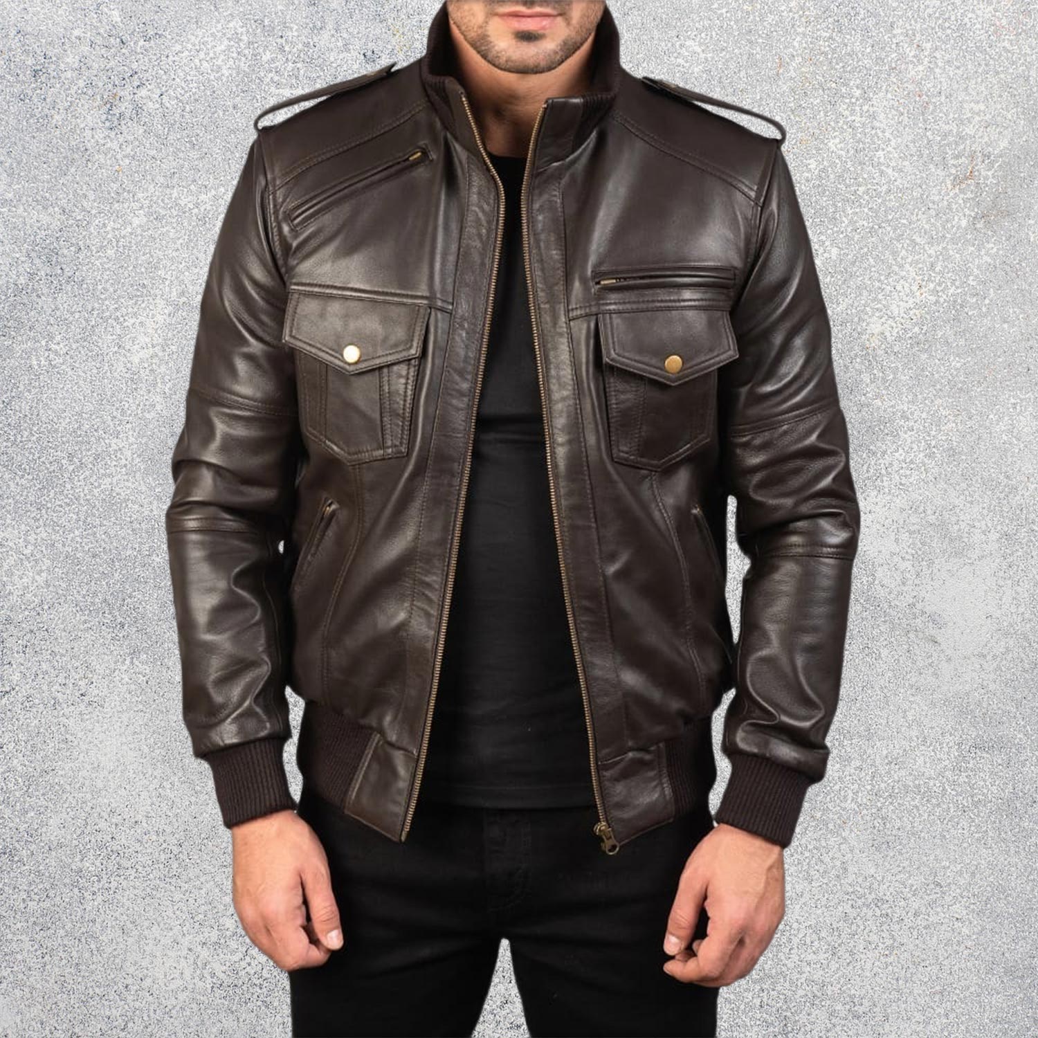 1 review for Shadowhawk Brown Men’s Leather Bomber Jacket