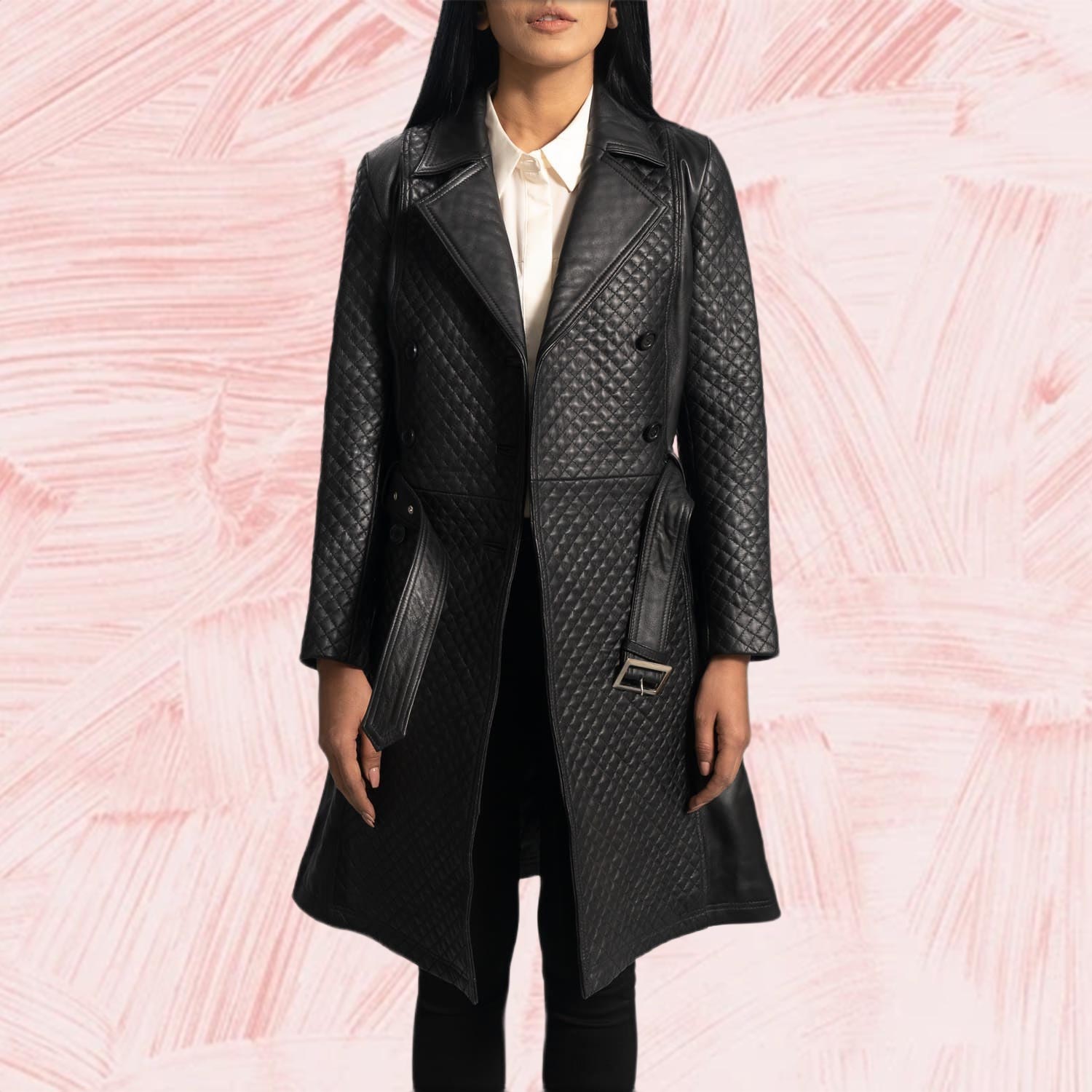 Sophisticated and timeless. The Siena Black Leather Trench Coat for Women blends classic elegance with modern craftsmanship, offering versatile style for any occasion.