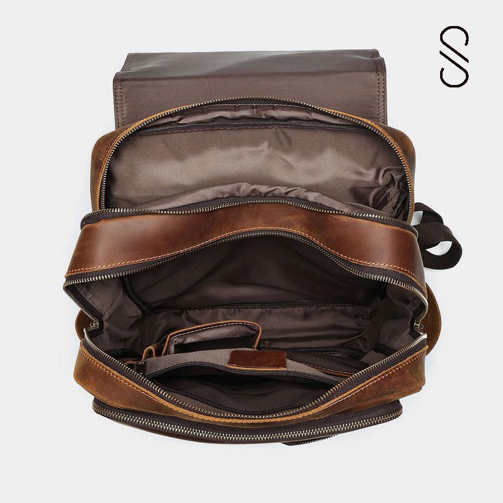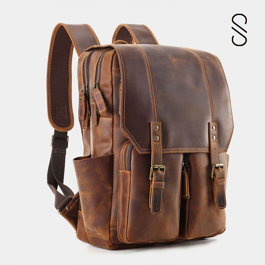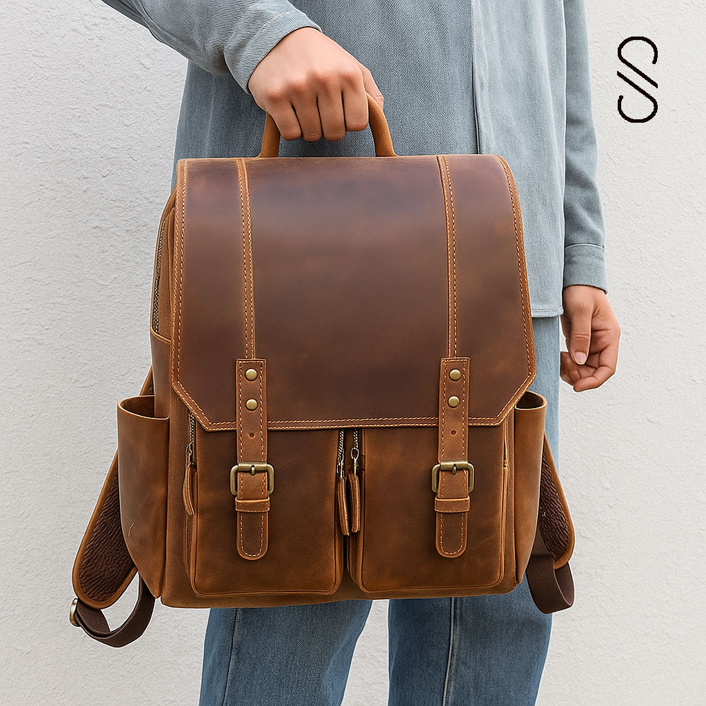 Featuring padded straps, brass hardware, and multiple compartments, it’s ideal for carrying your laptop, accessories, and travel essentials. Whether for men or women, this leather backpack is built for everyday style and adventure.