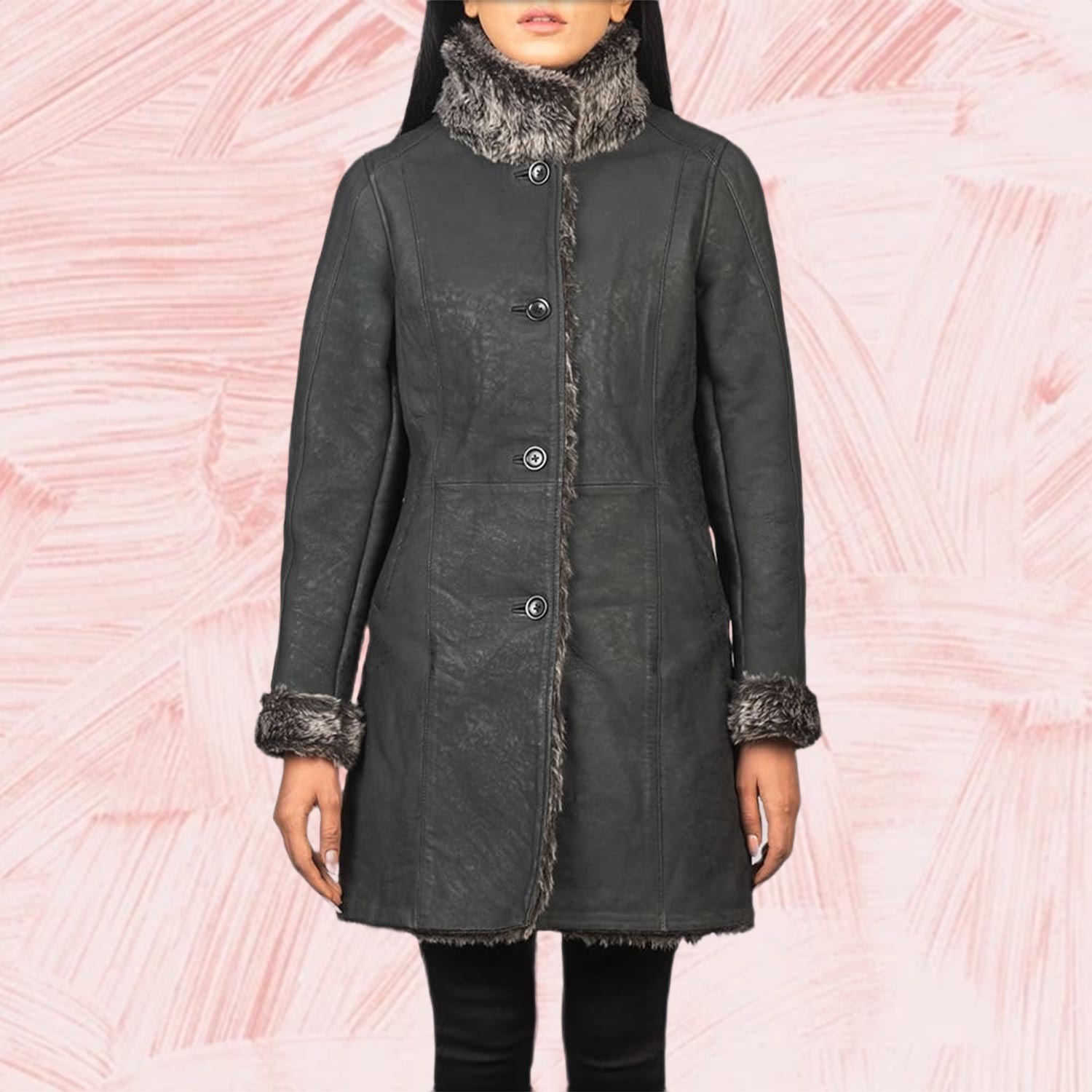 SaltCo Erica Shearling Black Women’s Leather Coat