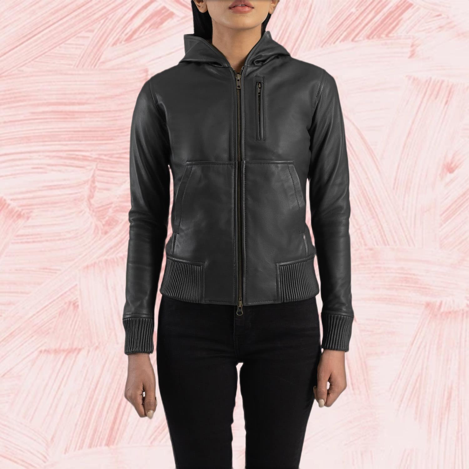 1 review for Luna Black Hooded Leather Bomber Jacket