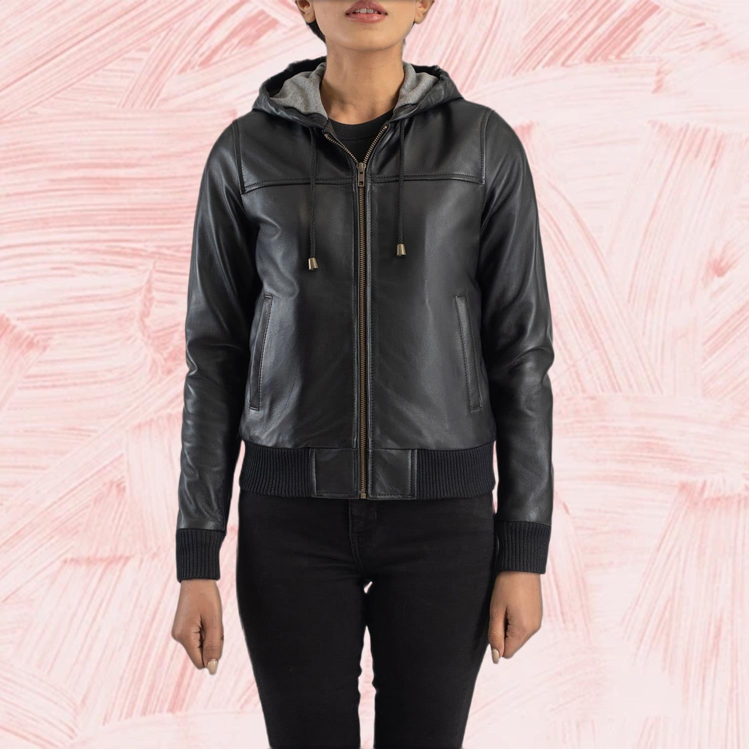 SaltCo Rebella Black Hooded Women’s Leather Bomber Jacket
